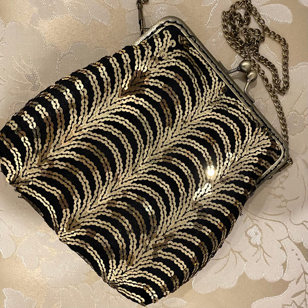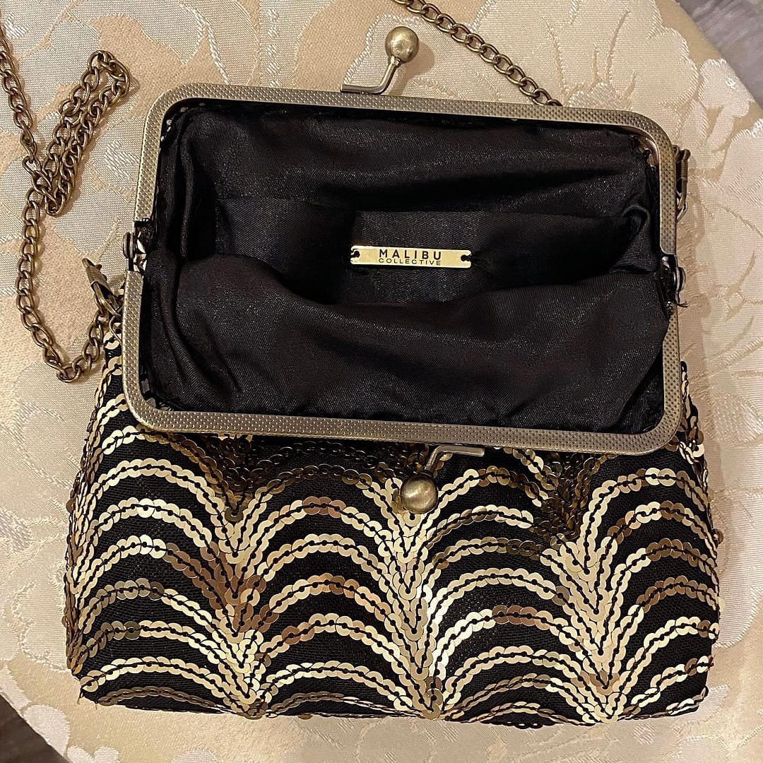 The petite version of the Gilded Age Frame Purse. This handmade bag has a chain shoulder strap and a silky polyester lining with inside pocket. Approximately 7″ wide and 6″ tall. Please allow approximately 3 days to ship as it will be made upon order.